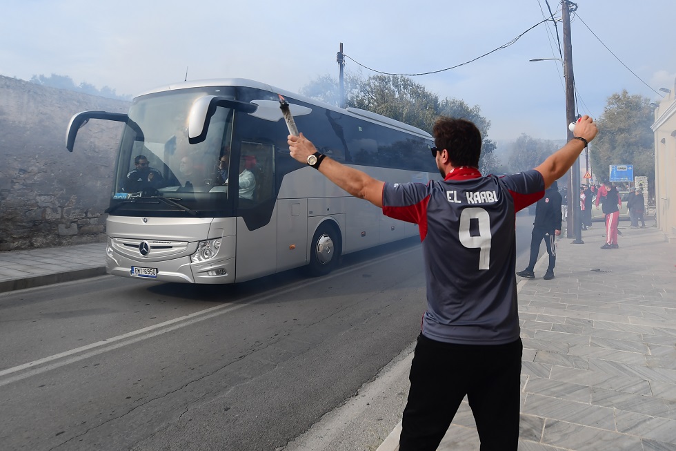 Η αποστολή της ομάδας του Χοσέ Λουίς Μεντιλίμπαρ αφίχθη πριν λίγη ώρα στο γήπεδο που θα γίνει το ματς, συνοδεία δεκάδων μηχανών. Με καπνογόνα και συνθήματα οι οπαδοί των Πειραιωτών δημιούργησαν μία «καυτή» ατμόσφαιρα και το τελευταίο διήμερο έχουν «αγκαλιάσει» τους νταμπλούχους Ελλάδας με τον πιο θερμό τρόπο.