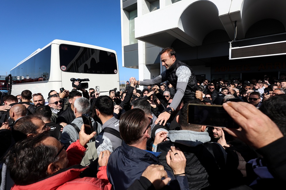 Οι οπαδοί της ομάδας είχαν συγκεντρωθεί στο αεροδρόμιο «Νίκος Καζαντζάκης» για να υποδεχθούν τους παίκτες του συλλόγου μετά τη μεγάλη αυτή επιτυχία που σημείωσαν.