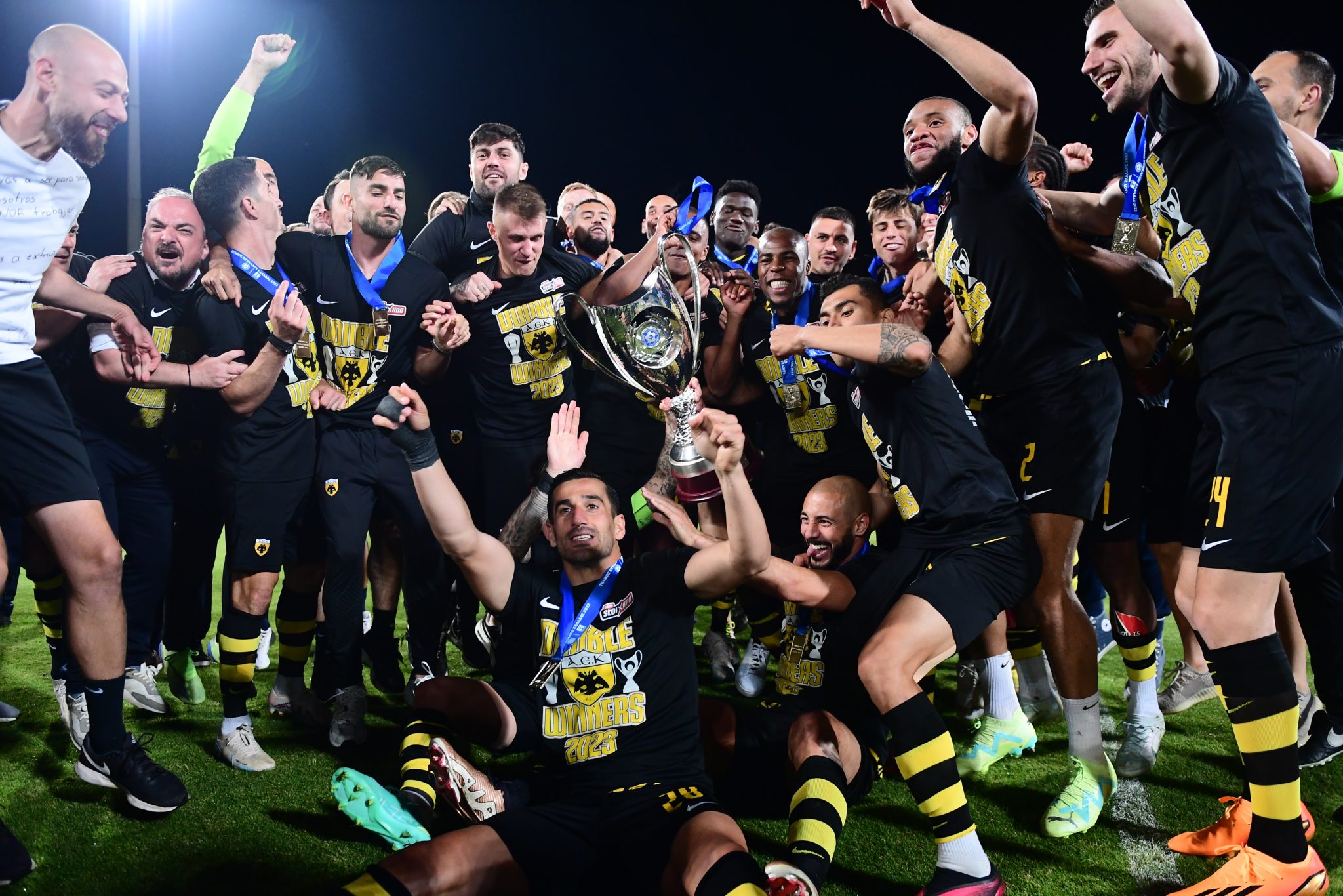 Το 2023 είχαμε επανάληψη του 2017. Τότε είχε έρθει η σειρά της ΑΕΚ να φύγει νικήτρια από τον Βόλο, μετά από δύο σερί χαμένους τελικούς. Οι κίτρινοι αυτή την φορά επικράτησαν στο «ντέρμπι δικέφαλων» με 2-0, ολοκληρώνοντας την κατάκτηση του Νταμπλ υπό της οδηγίες του Ματίας Αλμέιδα.
