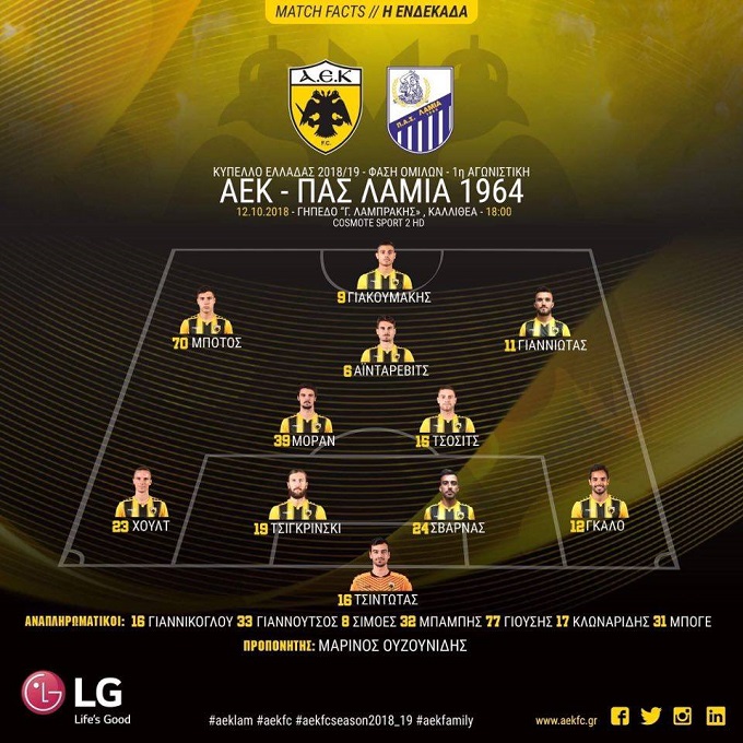 Αναλυτικά η ενδεκάδα των Κιτρινόμαυρων: Τσιντώτας, Γκάλο, Σβάρνας, Τσιγκρίνσκι, Χουλτ, Τσόσιτς, Μοράν, Αϊντάρεβιτς, Γιαννιώτας, Μπότος, Γιακουμάκης