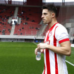 Ο Βέλγος επιθετικός φόρεσε τη φανέλα των Πειραιωτών, έκανε προθέρμανση με τους συμπαίκτες του και γνώρισε την αποθέωση. Οπως και σε κάθε επαφή του με την μπάλα. Ακόμνη και στο ζέσταμα!