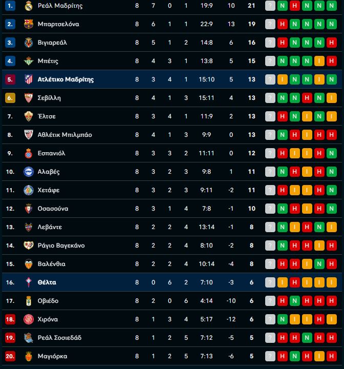 Η Θέλτα ήρθε ισόπαλη με 1-1 με την Ατλέτικο Μαδρίτης σε ματς για την 8η αγωνιστική της La Liga με την ομάδα της Γαλικίας να παίρνει ώθηση από τη νίκη που έκανε μεσοβδόμαδα με αντίπαλο τον ΠΑΟΚ για την δεύτερη αγωνιστική της League Phase του Europa League.