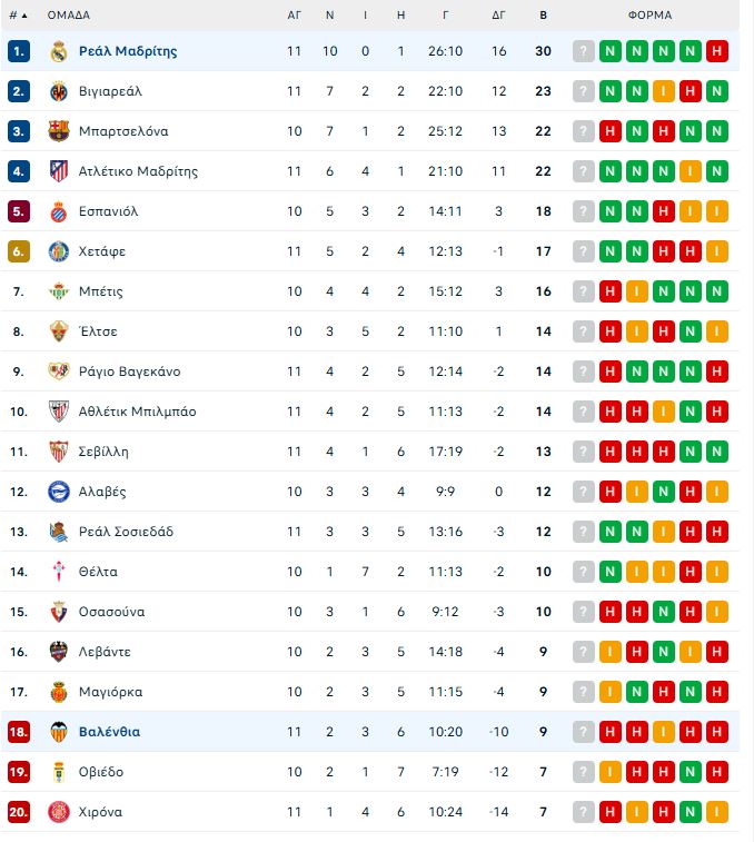 Αξίζει να σημειωθεί ότι η Ρεάλ Μαδρίτης βρίσκεται στην κορυφή της βαθμολογίας στη La Liga και «μετράει» μόνο μία ήττα, από την Ατλέτικο. Από την άλλη η Βαλένθια βρίσκεται στη 18η θέση.