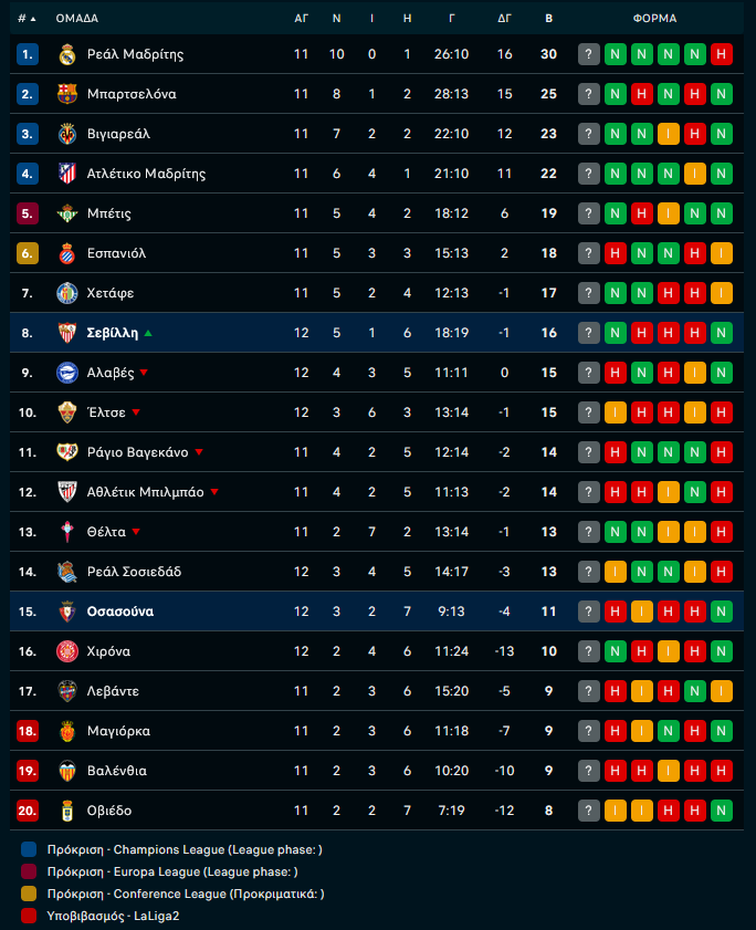 Μετά από τρεις σερί ήττες η Σεβίλλη πανηγύρισε ένα τρίποντο με το 1-0 επί της Οσασούνα στο «Ραμόν Σάντσεθ Πιθχουάν» για τη 12η αγωνιστική της La Liga. Καθοριστικός στο τέλος ο Οδυσσέας Βλαχοδήμος για την ομάδα του Ματίας Αλμέιδα που πλησίασε στις θέσεις της Ευρώπης.