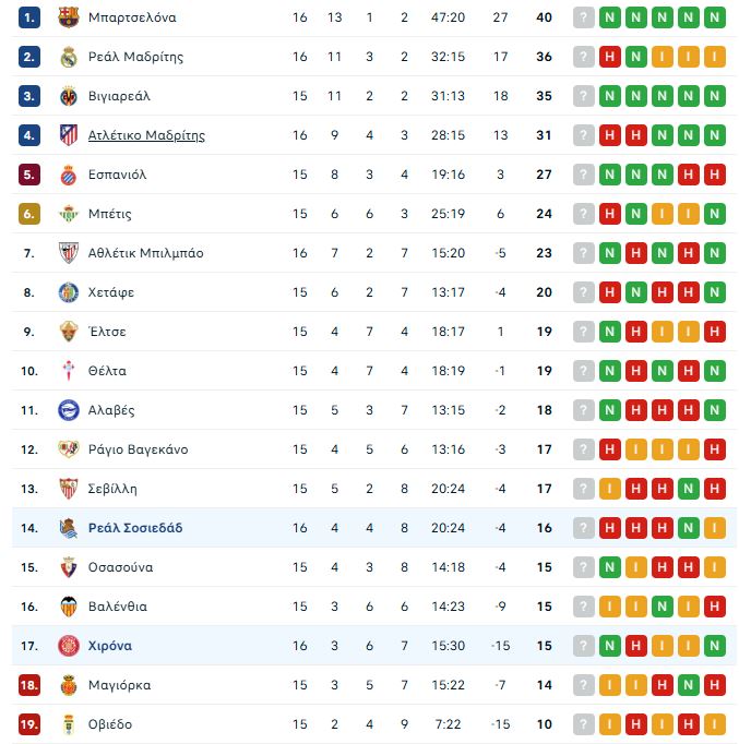 Tρομερή ανατροπή έκανε η Χιρόνα η οποία νίκησε με 2-1 μέσα στην έδρα της Ρεάλ Σοσιεδάδ για την 16η αγωνιστική της La Liga και ανέβηκε πάνω από τη ζώνη του υποβιβασμού, φτάνοντας τους 15 βαθμούς.