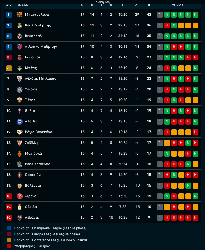 Τα αποτελέσματα και το υπόλοιπο πρόγραμμα στην 17η αγωνιστική της La Liga