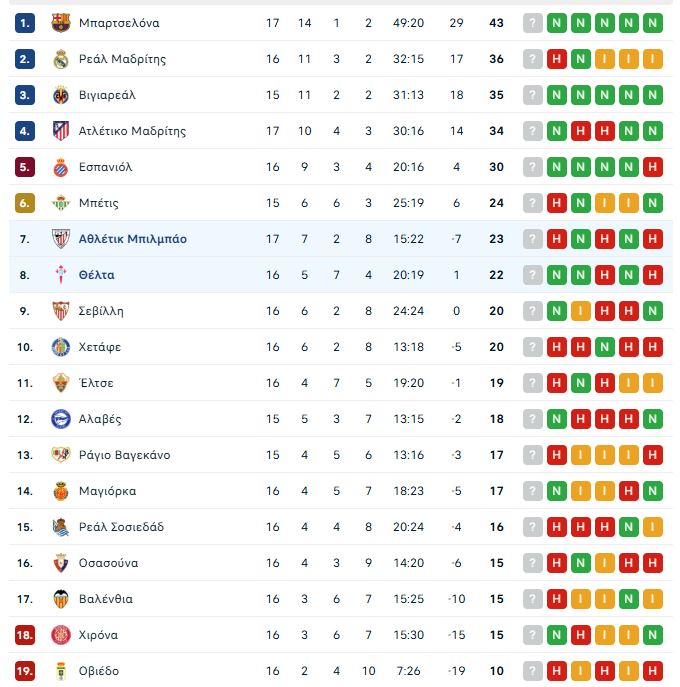 17:15 Θέλτα – Αθλέτικ Μπιλμπάο 2-0