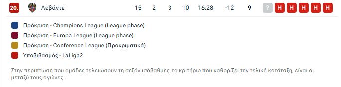 19:30 Λεβάντε – Βιγιαρεάλ (Αναβλήθηκε)