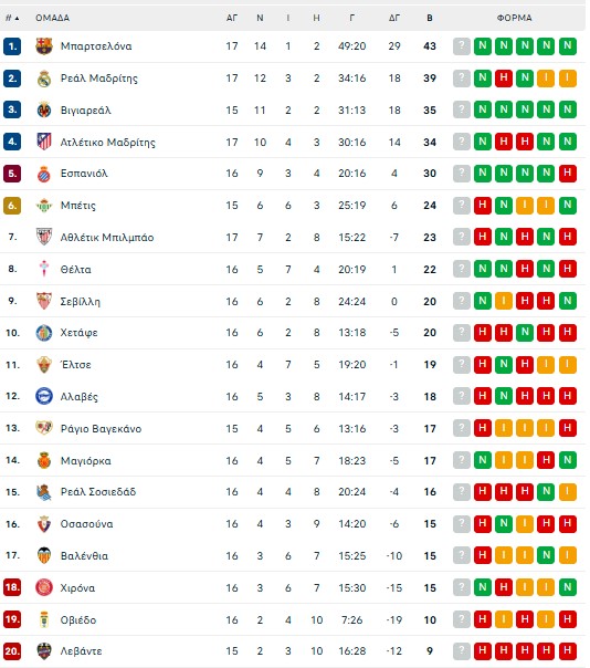 22/12 22:00 Αθλέτικ – Εσπανιόλ