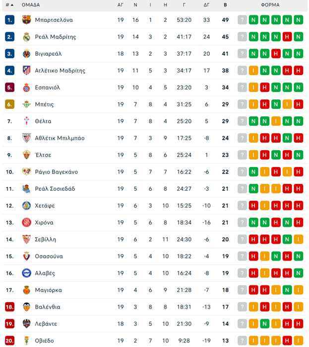 Τα αποτελέσματα της 19ης αγωνιστικής: