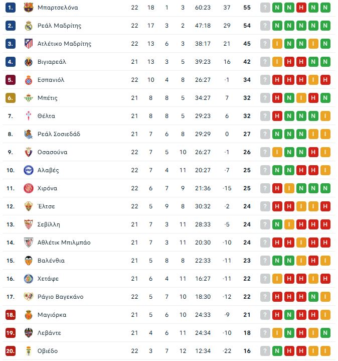 Το πρόγραμμα της 22ης αγωνιστικής της La Liga: