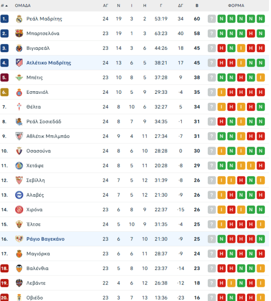 Χτύπησε την κατάλληλη στιγμή η Ράγιο Βαγιεκάνο η οποία αιφνιδίασε την Ατλέτικο Μαδρίτης με δυο γκολ σε 5’ (στο 40’ και στο 45’) και ένα ακόμη στο 76’. Έτσι πήρε βαθμολογική ανάσα, νικώντας με 3-0 στο Μαδριλένικο ντέρμπι. Νίκησε την παράδοση αλλά και τους αντιπάλους της, καθώς το προηγούμενο τρίποντο επί της Ατλέτικο ήταν στις 10/2/13, συνολικά 13 χρόνια πριν!