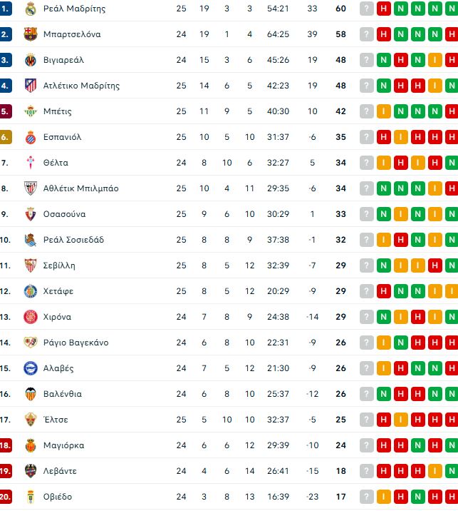 Οι Ανδαλουσιάνοι βρίσκονται στην 11η θέση του βαθμολογικού πίνακα του ισπανικού πρωταθλήματος, ενώ η Χετάφε φιγουράρει στη 12η θέση.