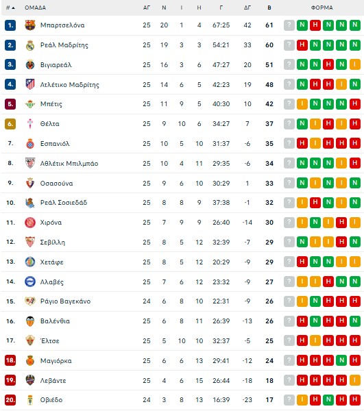 Τα αποτελέσματα της 25ης αγωνιστικής: