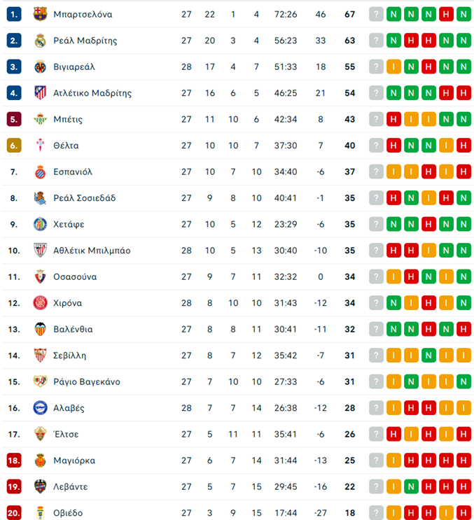 Βιγιαρεάλ-Ρεάλ Σοσιεδάδ (22:00)