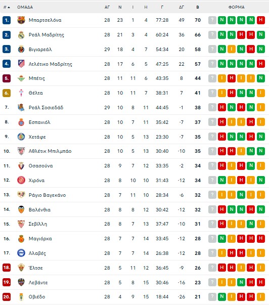Το πρόγραμμα και τα αποτελέσματα της 28ης αγωνιστικής: