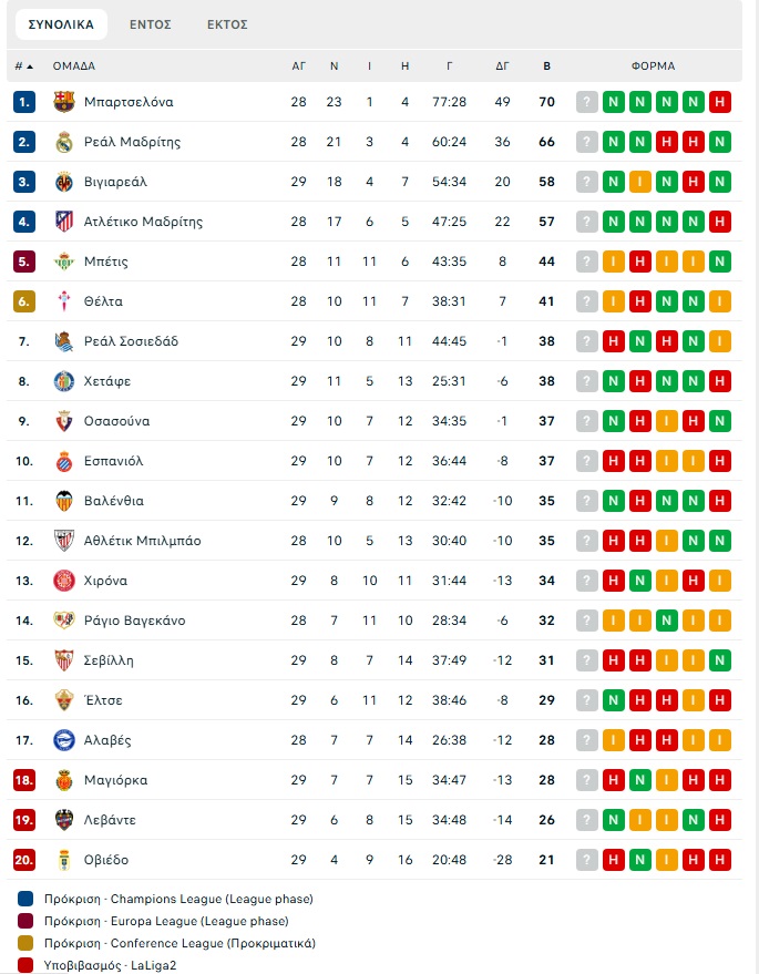 Τα αποτελέσματα και το υπόλοιπο πρόγραμμα της 29ης αγωνιστικής της La Liga
