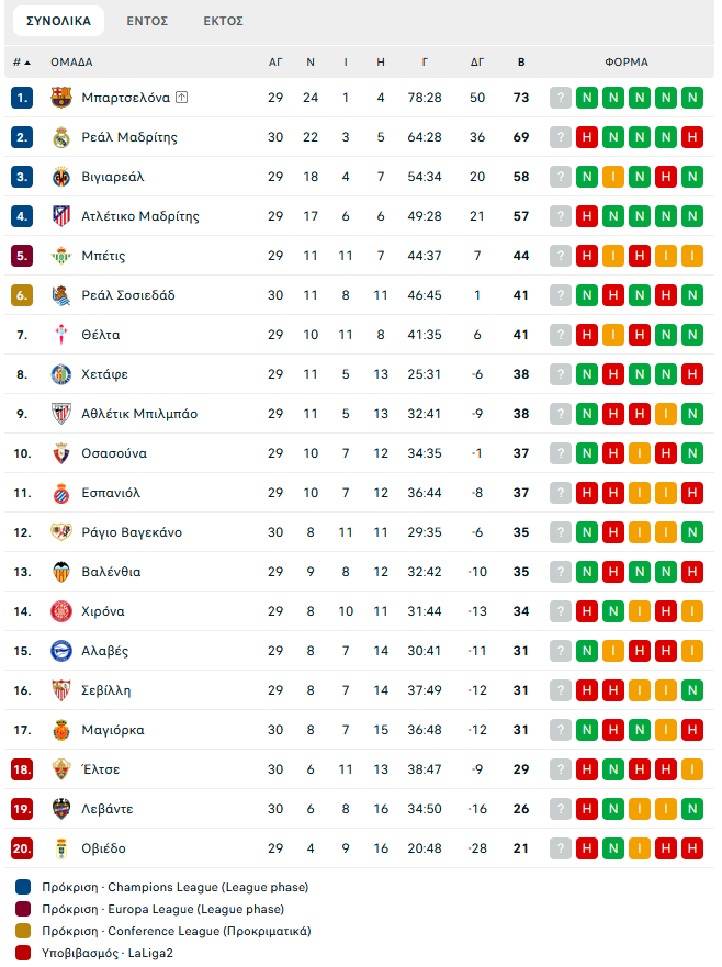 Ρεάλ Μαδρίτης-Τζιρόνα (22:00)