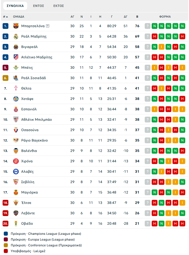 Τα αποτελέσματα και το υπόλοιπο πρόγραμμα της 30ης αγωνιστικής: