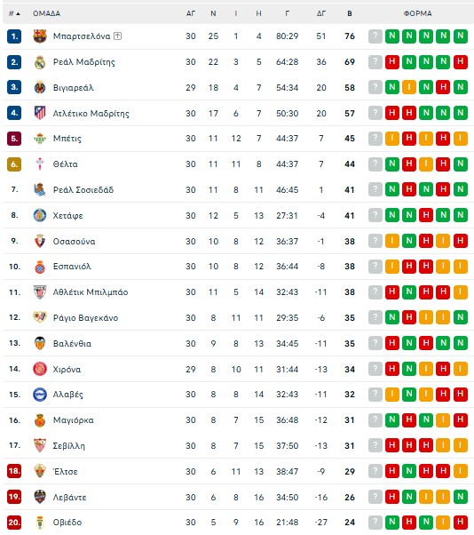 Το πρόγραμμα και τα αποτελέσματα της 30ης αγωνιστικής: