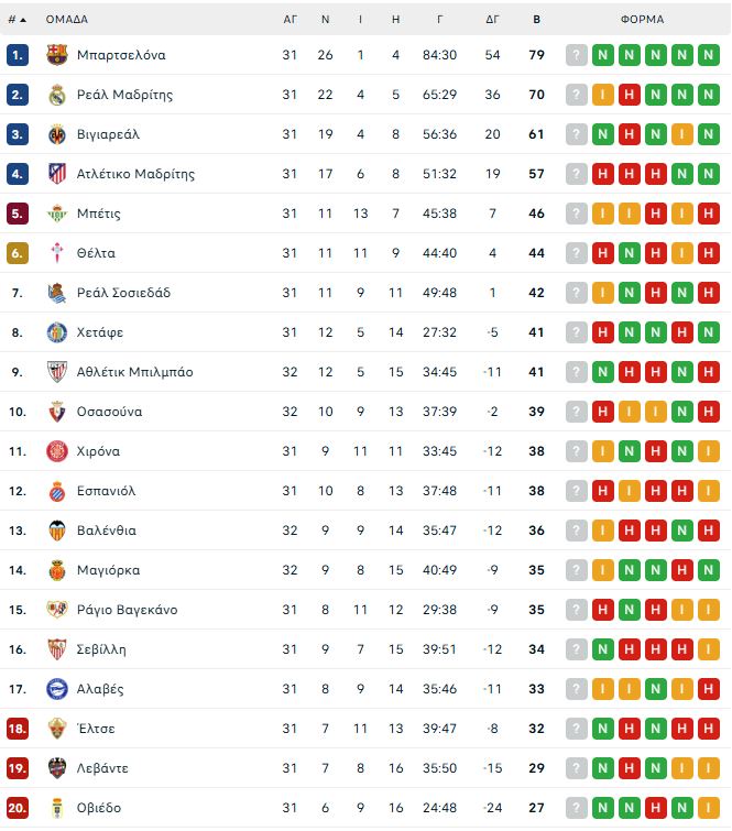 Η Αθλέτικ Μπιλμπάο επικράτησε 1-0 εντός έδρας της Οσασούνα, με το γκολ του Γκουρουθέτα στο 16ο λεπτό να κάνει τη διαφορά στο ματς. Οι φιλοξενούμενοι έψαχναν σε όλο το ματς την ισοφάριση, ενώ έχασαν και πέναλτι, μετά από υπόδειξη του VAR, με τον Μπούντιμιρ, στο 57ο λεπτό. Μάλιστα, η ομάδα του Ερνέστο Βαλβέρδε ολοκλήρωσε το ματς με 10 παίκτες λόγω της αποβολής του Τζαουρεγκιθάρ στο 90′ +1. Στους 41 βαθμούς οι Βάσκοι και την 9η θέση, ενώ οι φιλοξενούμενοι έμειναν στους 39 και την 10η θέση.