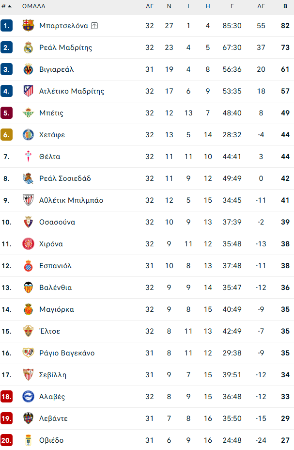 Το πρόγραμμα της 32ης αγωνιστικής της La Liga: