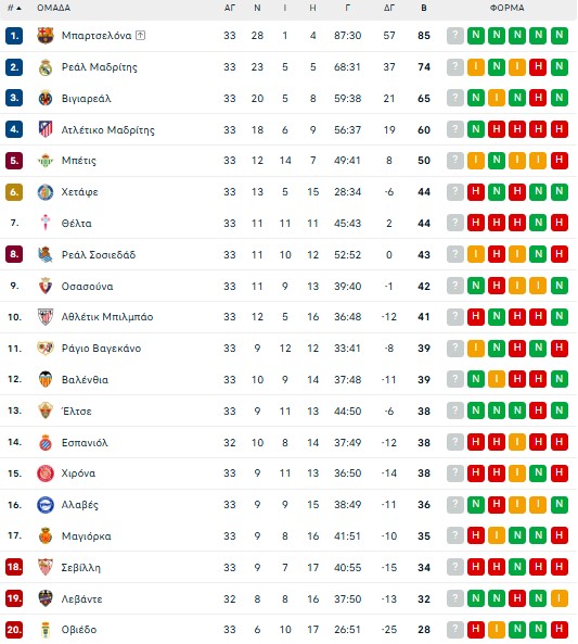 Με τους τρεις βαθμούς που πρόσθεσε στη «σούμα» του πρωταθλήματος η Βιγιαρεάλ έφτασε στους 65, εδραιώθηκε στην τρίτη θέση και ουσιαστικά εξασφάλισε από σήμερα την έξοδο στο Τσάμπιονς Λιγκ 2026-27.
