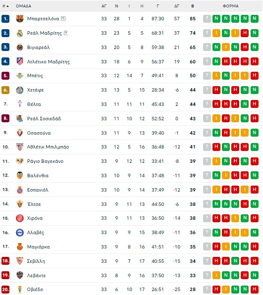 Έτσι οι Καταλανοί πήγαν στους 39 πόντους και στη 13η θέση, παραμένοντας χωρίς νίκη για 16 σερί ματς, χωρίς να έχει πάρει αυτή τη χαρά μέσα στο 2026! Από την άλλη, η ομάδα της Βαλένθια έφτασε τους 33 πόντους παραμένοντας στην προτελευταία θέση.
