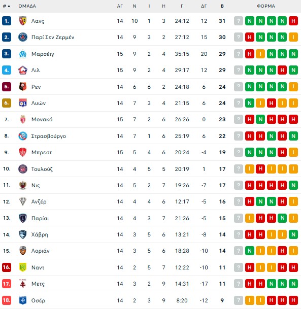 Κι έτσι έδωσε την ευκαιρία στις Λανς και Παρί Σεν Ζερμέν να ξεφύγουν στις δύο πρώτες θέσεις της βαθμολογίας, εάν νικήσουν τη Ναντ (εκτός) και τη Ρεν (εντός) το βράδυ του Σαββάτου (6/12). Η Λιλ σημείωσε την τρίτη σερί νίκη της στο πρωτάθλημα, «έπιασε» τη Μαρσέιγ στους 29 βαθμούς κι εδραίωσε την παρουσία της στις θέσεις που οδηγούν στο επόμενο Champions League.