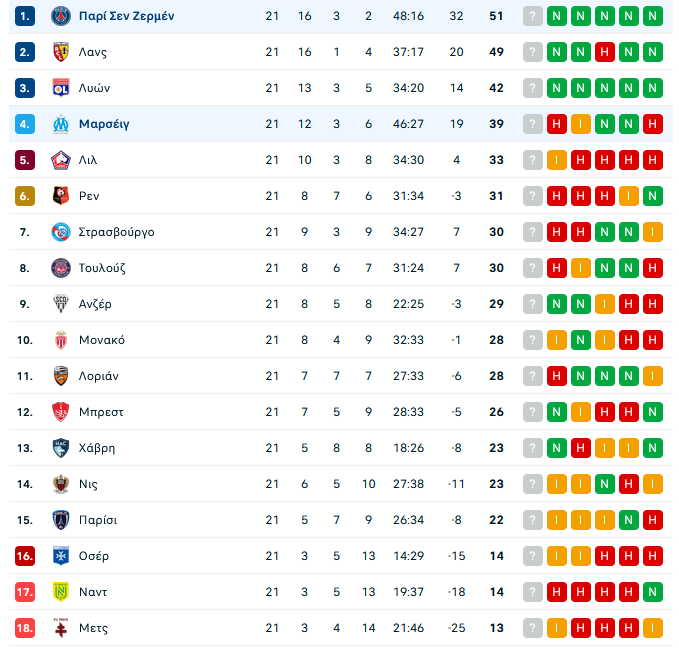 Τα αποτελέσματα της 21ης αγωνιστικής της Ligue 1