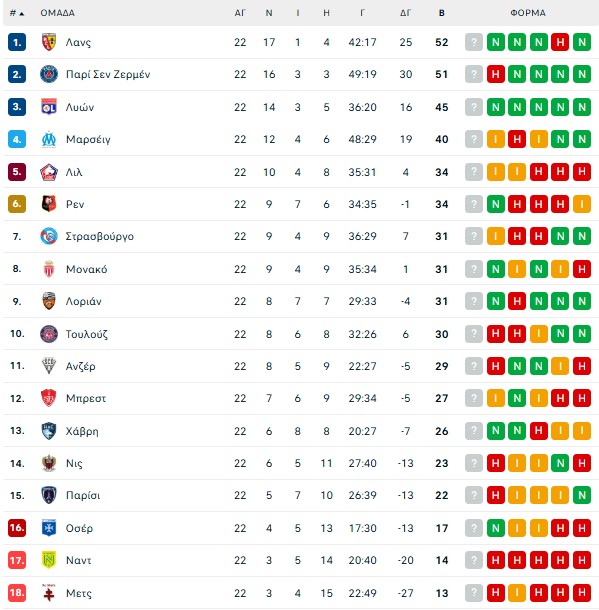Παρί – Λανς 0-5 (24′ 38′ Σαΐντ, 58′ πεν. Τοβέν, 90′ 90+5′ Φοφανά)