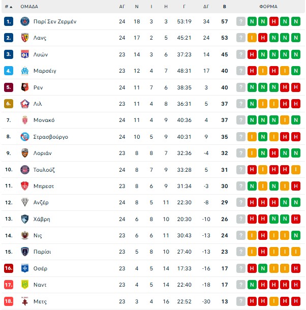 Τη διαφορά της από τη δεύτερη Λανς αύξησε η Παρί Σεν Ζερμέν, η οποία επιβλήθηκε της Χάβρης 1-0. Με νίκες συνέχισαν Ρεν και Μονακό.