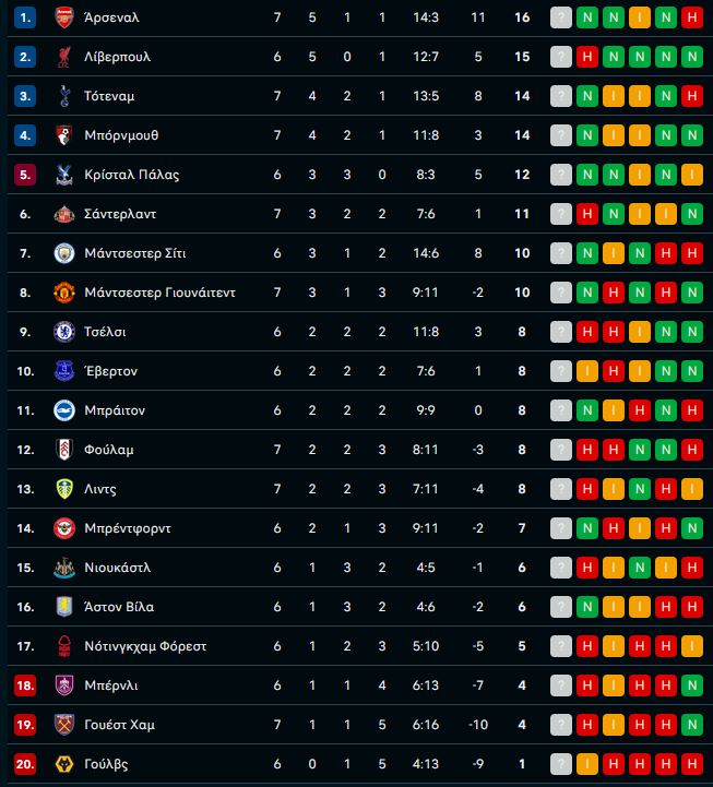 Το πρόγραμμα και τα αποτελέσματα της 7ης αγωνιστικής στην Premier League
