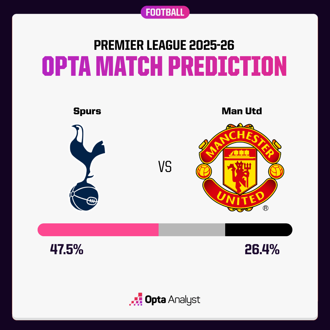 Μοιραία, ο Αμορίμ και οι παίκτες του θα πρέπει σήμερα να νικήσουν την παράδοση και τον υπερυπολογιστή της Opta προκειμένου να συνεχίσουν το αήττητο σερί τους και να παραμείνουν κοντά στο… ρετιρέ της Premier League, ενώ και η Τότεναμ έχει επίσης ισχυρό κίνητρο. Αμφότερες οι δύο ομάδες είναι στους 17 βαθμούς και μια νίκη θα μπορούσε να τους βάλει στην 4άδα, ανάλογα και με τα υπόλοιπα αποτελέσματα.