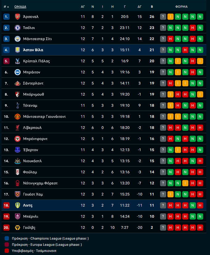 Τα αποτελέσματα και το υπόλοιπο πρόγραμμα της 12ης αγωνιστικής:
