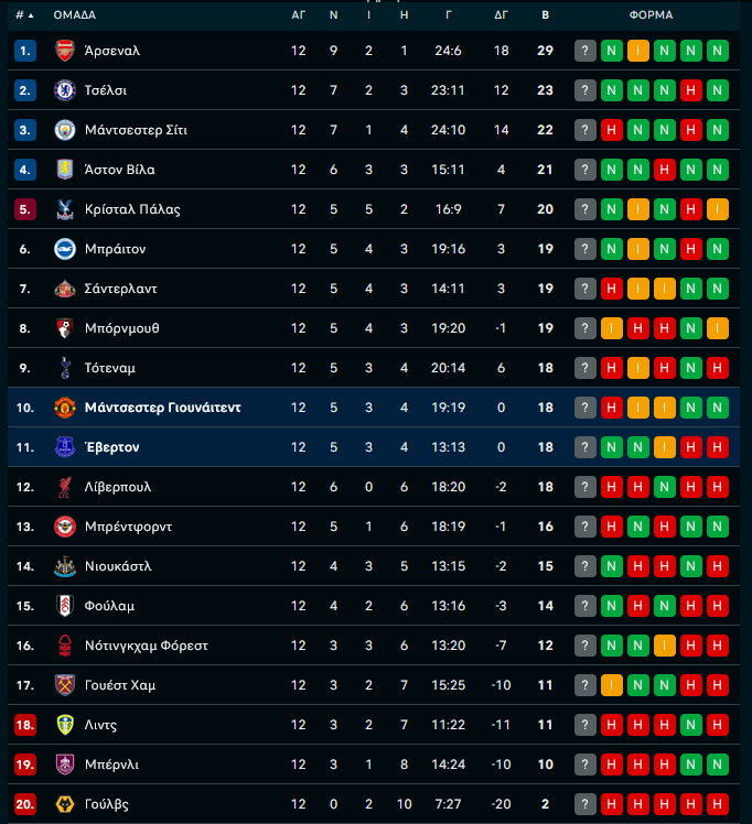 Τα αποτελέσματα της 12ης αγωνιστικής: