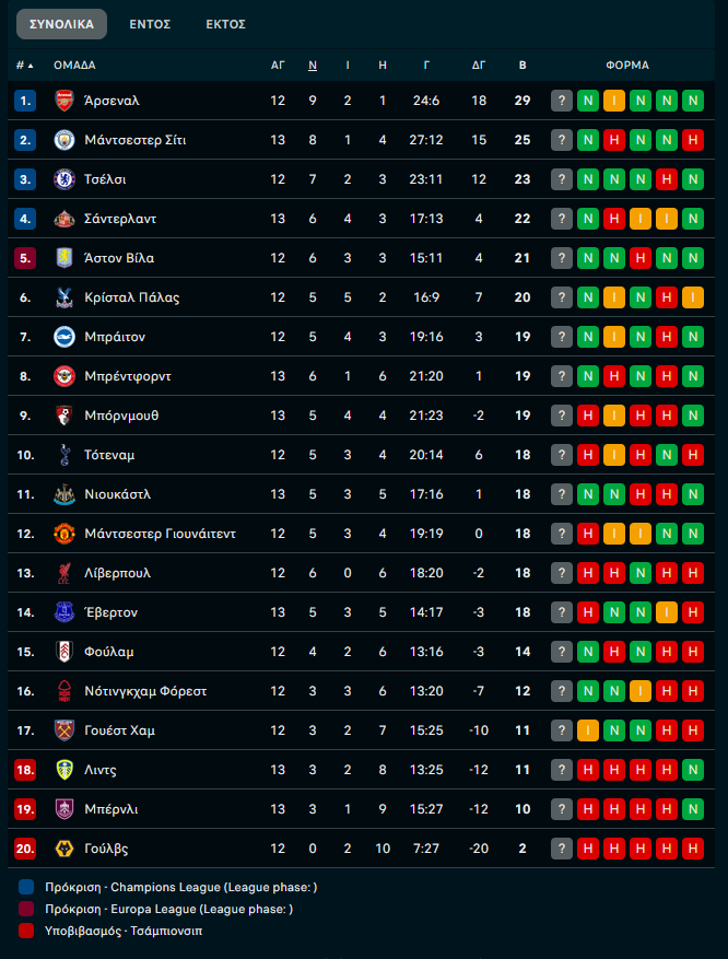 Τα αποτελέσματα και το υπόλοιπο πρόγραμμα της 13ης αγωνιστικής:
