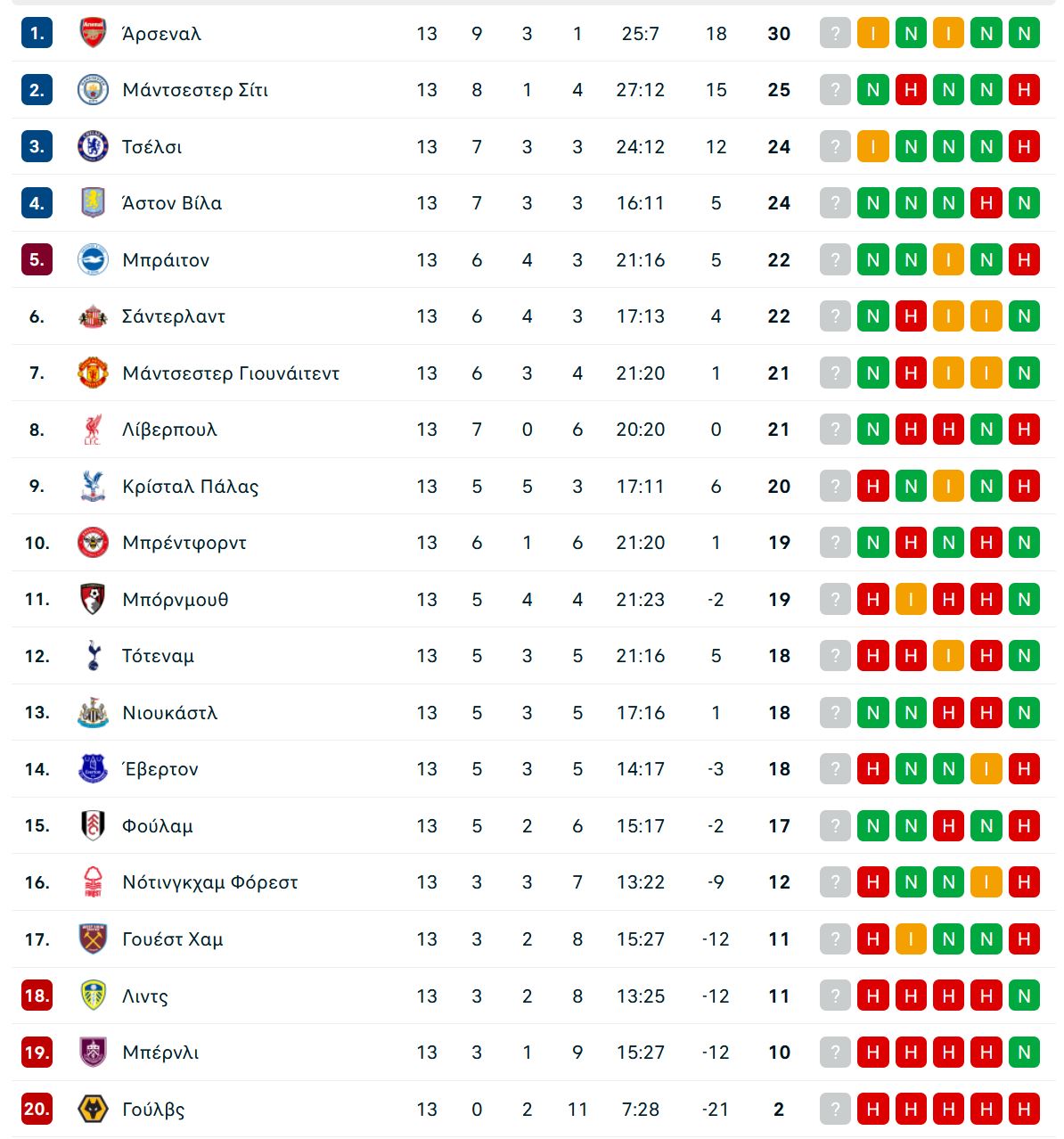 Το πρόγραμμα και τα αποτελέσματα της 13ης αγωνιστικής: