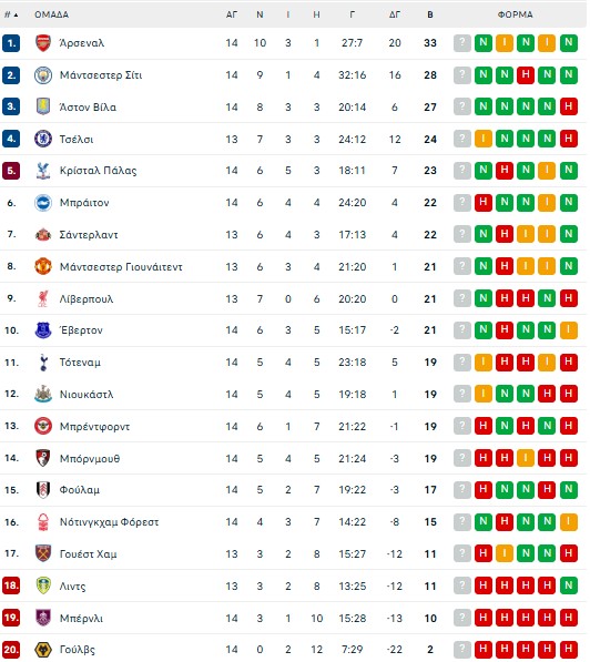 Η Άρσεναλ συνεχίζει να... τρελαίνει κόσμο επικρατώντας της Μπρέντφορντ με 2-0, ενώ με νίκες συνέχισαν τις υποχρεώσεις τους Άστον Βίλα και Κρίσταλ Πάλας.