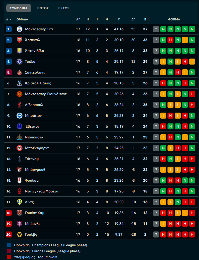 Τα αποτελέσματα και το υπόλοιπο πρόγραμμα της 17ης αγωνιστικής: