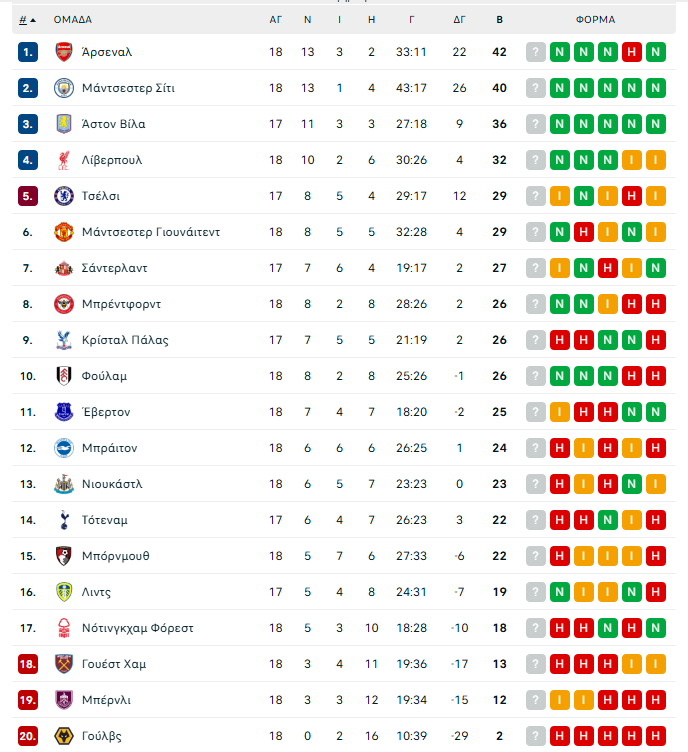 30/12 22:15 Άρσεναλ – Άστον Βίλα