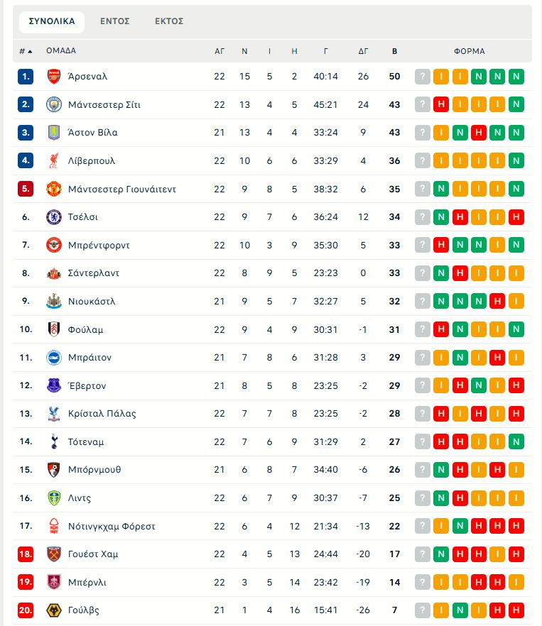 25/01 18:30 Άρσεναλ – Μάντσεστερ Γιουνάιτεντ