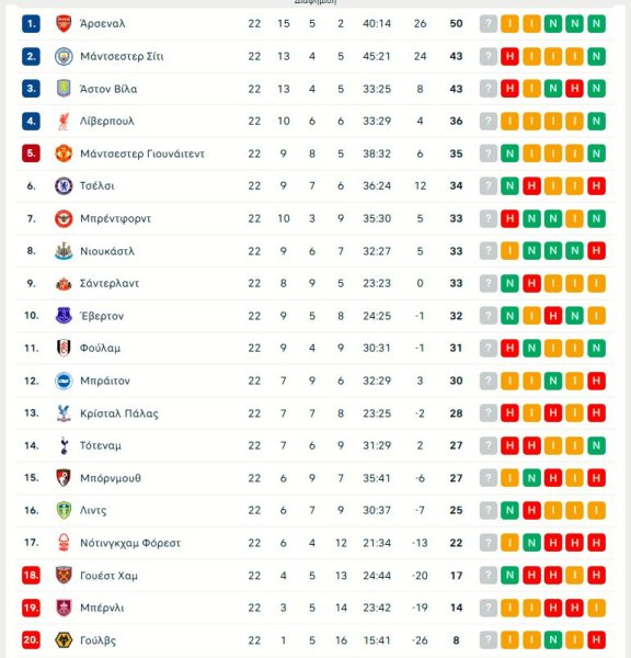 25/01 18:30 Άρσεναλ – Μάντσεστερ Γιουνάιτεντ