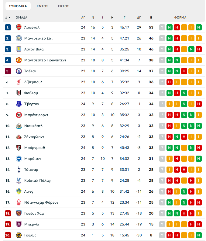Τα αποτελέσματα και το υπόλοιπο πρόγραμμα της 24ης αγωνιστικής: