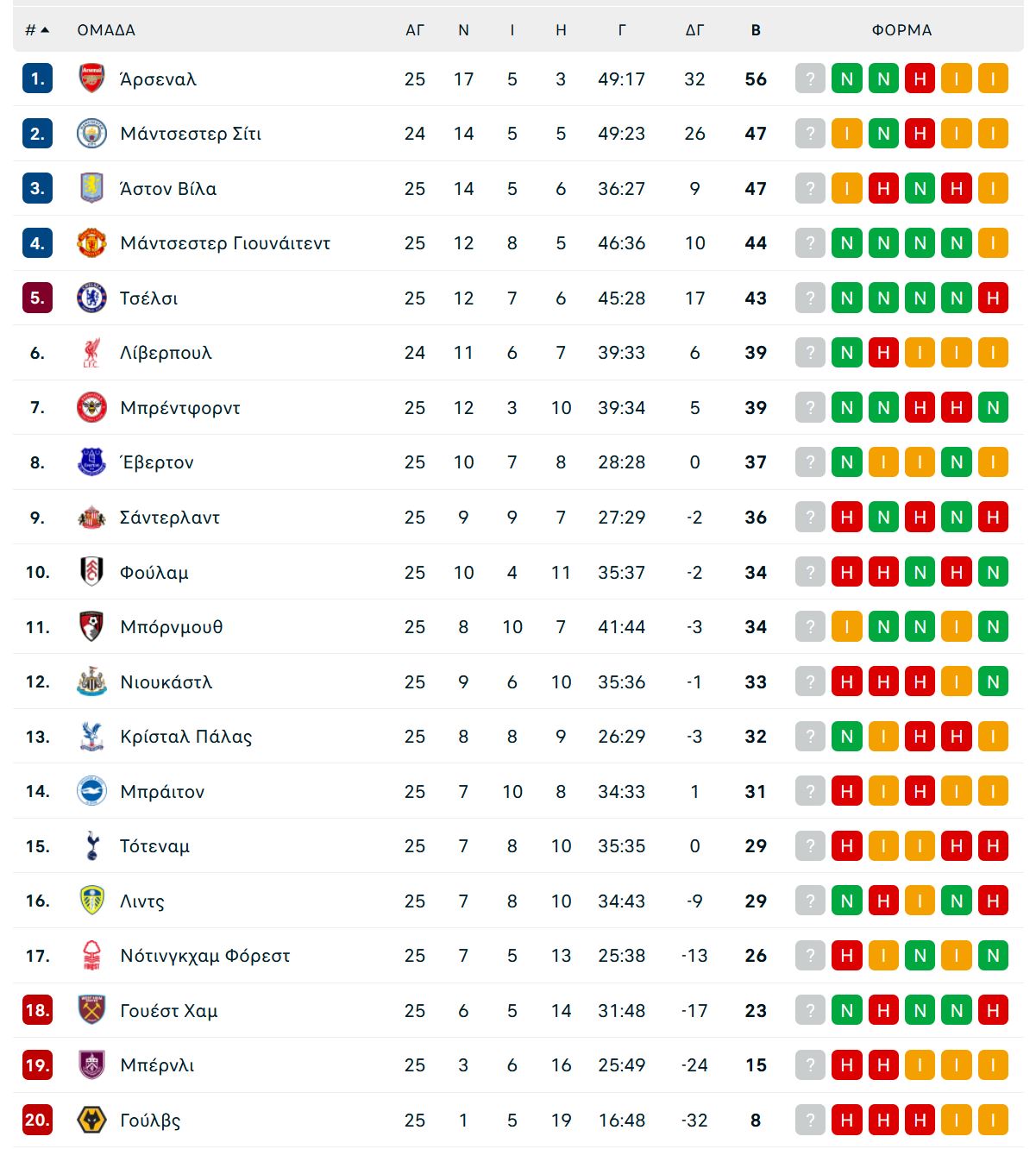 Αναλυτικά, τα αποτελέσματα και το υπόλοιπο πρόγραμμα της 25ης αγωνιστικής της Premier League: