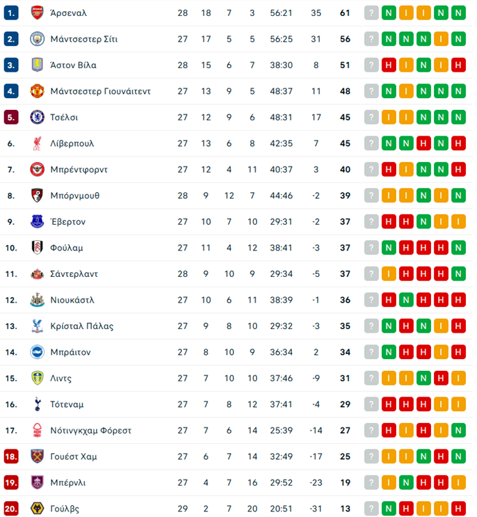 Αξίζει να σημειωθεί ότι μετά το σημερινό αποτέλεσμα, η Μπόρνμουθ βρίσκεται στην 8η θέση της βαθμολογίας με 39 βαθμούς και η Σάντερλαντ, είναι στην 11η θέση με 33 βαθμούς.