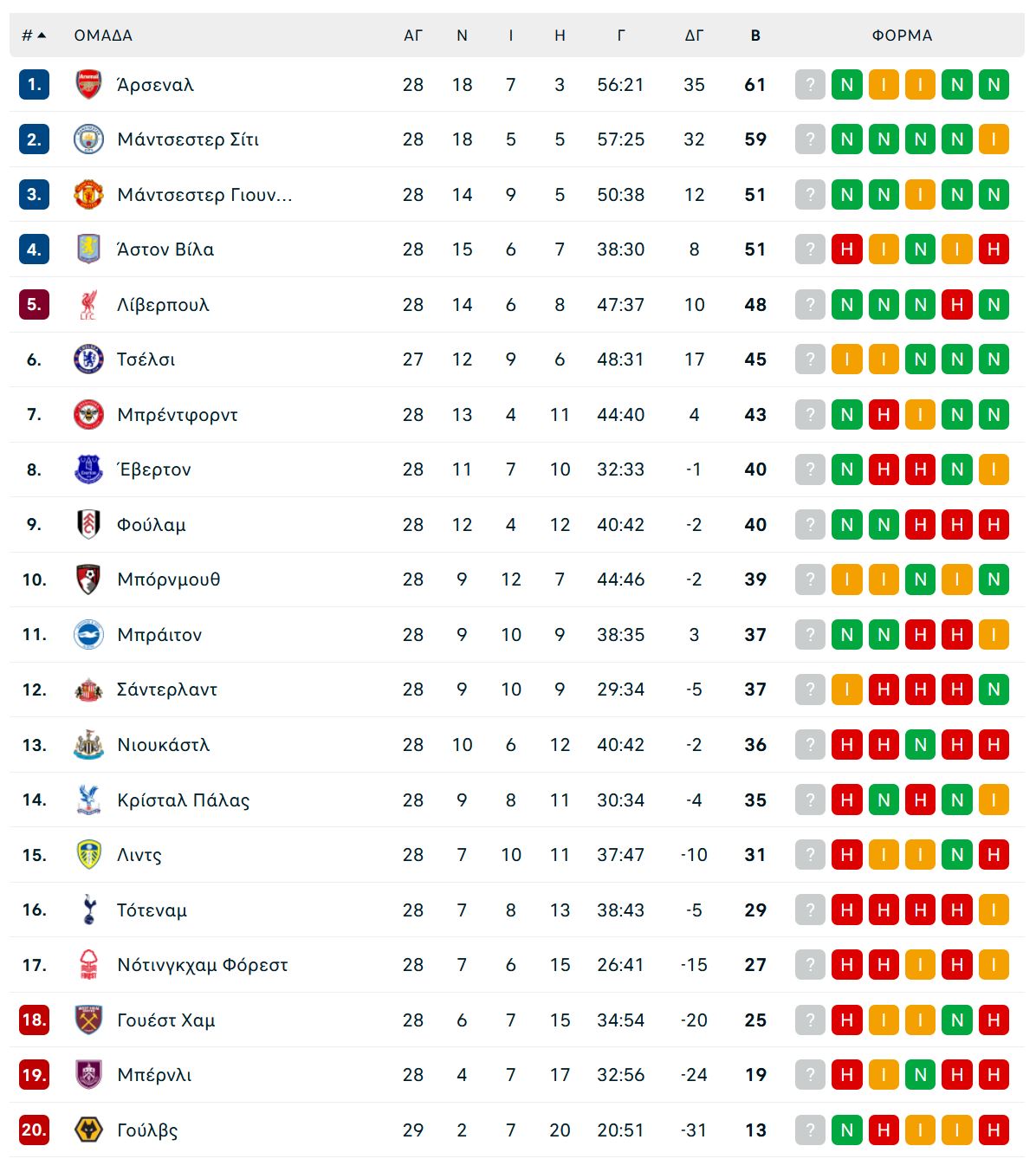 Αναλυτικά, τα αποτελέσματα και το υπόλοιπο πρόγραμμα της 28ης αγωνιστικής της Premier League: