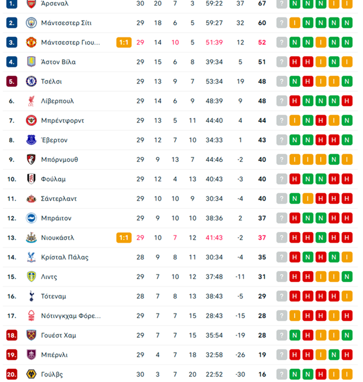 Τα αποτελέσματα και το υπόλοιπο πρόγραμμα της 29ης αγωνιστικής:
