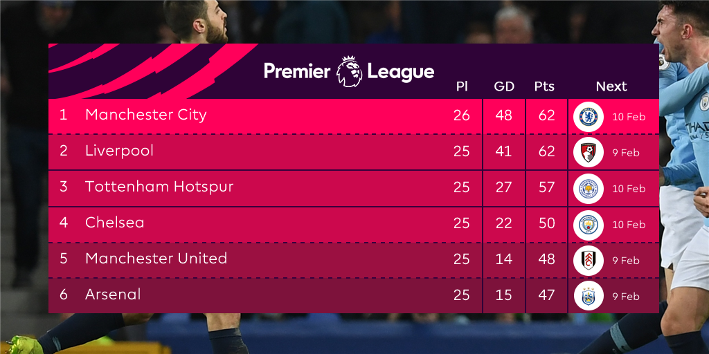 Πιο συγκεκριμένα μετά το 2-0 κόντρα στην Έβερτον το βράδυ της Τετάρτης η ομάδα του Γκουαρδιόλα έπιασε στην κορυφή στους 62 πόντους την Λίβερπουλ και έχει αβαντάζ στην ισοβαθμία.