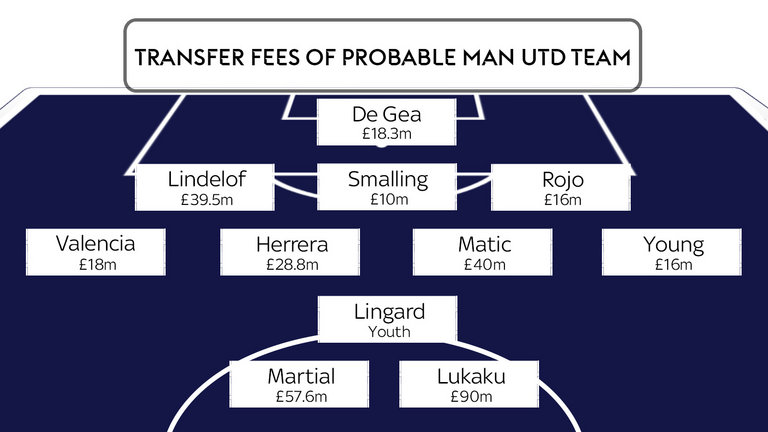 Ο σέντερ φορ της Γιουνάιτεντ Ρομέλου Λουκάκου είναι ο πιο ακριβός παίκτης για την ομάδα του Μουρίνιο στο ντέρμπι κορυφής, καθώς ο Βέλγος κοστολογείται με 90 εκατ. λίρες. Ακολουθεί στη δεύτερη θέση ο Μαρσιάλ με 57,6 εκατ. και η συνέχεια ανήκει σε Μάτιτς (40 εκατ.) και Λίντελοφ (39,5 εκατ.).